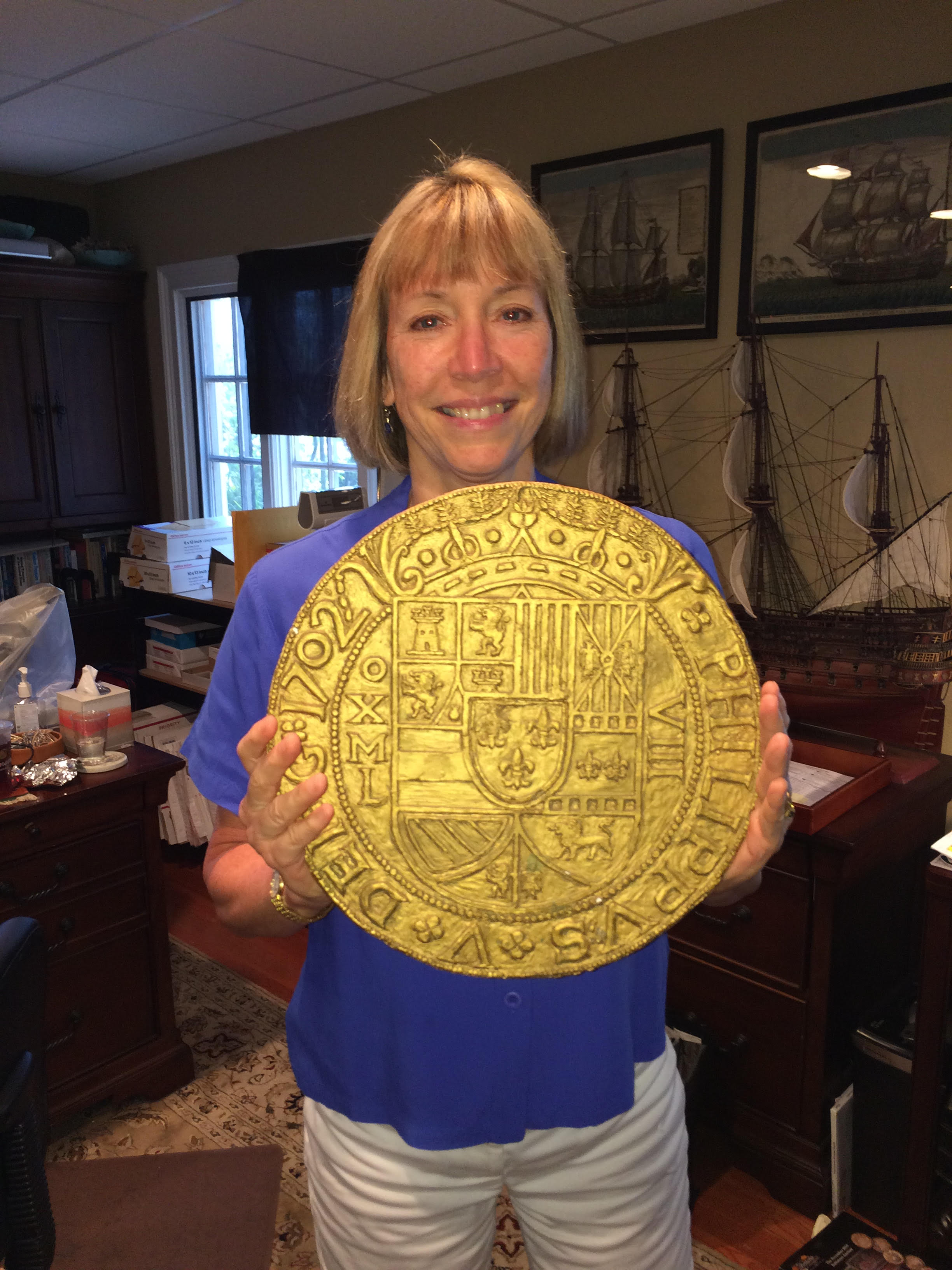 Auction and catalog production begins many months prior to the auction date as we reach out to consignors to send or bring their consignments to us for evaluation and approval. This is the really fun part of the auction process because we never know what’s going to come through the door, and picking up packages at the post office seems a bit like Christmas. While most consignments consist of coins, there are also great consignments of artifacts and good old-fashioned pirate stuff:  swords, cannons, cannonballs, blunderbusses. Each coin and artifact is weighed and measured.Dan working on TA #17 (2)