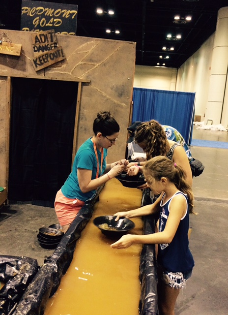 While coin collecting is mostly an adult addiction, it’s nice to see that the FUN show offers treats for the youngsters. The youngest member of our team and Augi’s daughter, Mora, not only spent time scrutinizing our coins, but she also panned for gold just like in the Wild West and learned to carve the die of a hobo nickel. I wonder what she’ll know how to do by the time she graduates from elementary school.