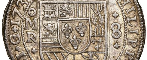 In Lima Silver Cobs and Potosí Silver Cobs we proudly present the Arturo Rosenheim Collection and several great 8 reales Royals, including: Lima 1689 (lot 341) and 1695 (lot 348); Potosí 1630 (lot 423) and 1652 Type V Transitional (lot 449), plus a non-holed, NGC-certified AU 53 1742 (lot 539). We finish Potosí with a unique 2 reales Heart of 1733 assayer E (lot 623).