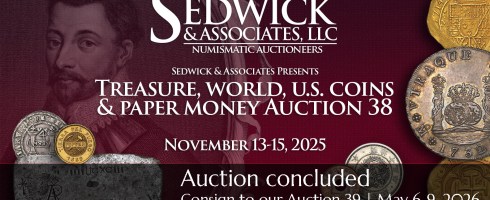 As yet another exciting auction from the Sedwick company, this one is sure to get everyone’s collecting juices flowing, demonstrating that numismatics and treasure transform history and artistry into excitement and positive human collaboration, something our world can surely use more of today.